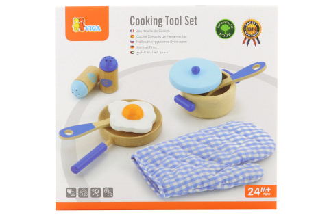 Dřevěná sada nádobí. Balení obsahuje hrnec, pánev, chňapku, vejce a další doplňky. Rozměry balení cca 24 x 22 x 7 cm. Věk 24m+ prečítať celé