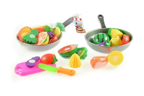 Krájecí potraviny s pánví jsou vhodné pro holčičky, které si rády hrají na kuchařky nebo prodavačky. Zvláštností této sady je to, že je spojeno na suchý zip, a tak se může nakrájet i bez nože. Proto nehrozí žádné zranění. Krájecí ovoce či zelenina je uložen v pánvi o délce 30 cm. Vyrobeno z kvalitního a odolného plastu.