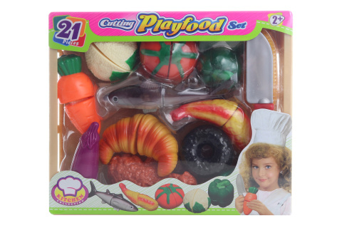 Sada krájení. Jídlo je uvnitř spojeno suchým zipem, lze ho krájet (oddělovat) opakovaně. Děti se tak učí správnou motoriku. Balení obsahuje celkem 21 kusů. Rozměry balení cca 26,5 x 22,5 x 5 cm. Věk 2+ prečítať celé