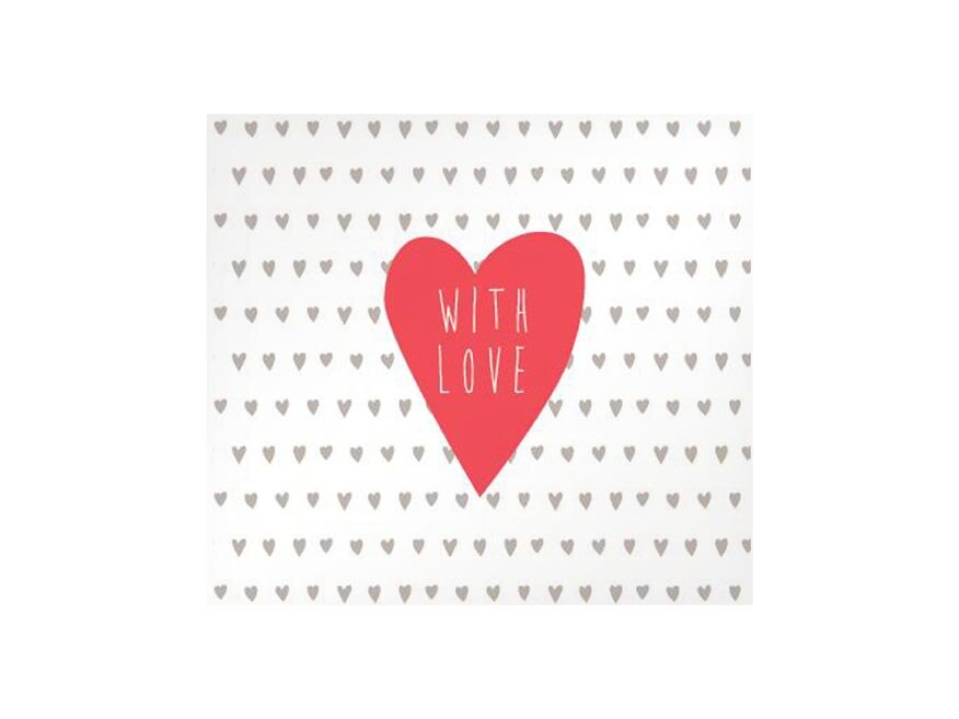Třívrstvý papírový ubrousek. Krásné kvalitní ubrousky s motivem srdíček a nápisem „WITH LOVE“ vykouzlí příjemnou atmosféru. Ideální na zahradní prostírání, oslavy nebo na zkrášlení interiéru.