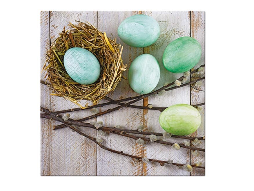 Papírový velikonoční ubrousek. Krásné velikonoční ubrousky dodají prostřenému stolu nádech přicházejícího jara a vykouzlí příjemnou atmosféru u slavnostního oběda nebo večeře. Ubrousek je kvalitní z třívrstvého papíru.