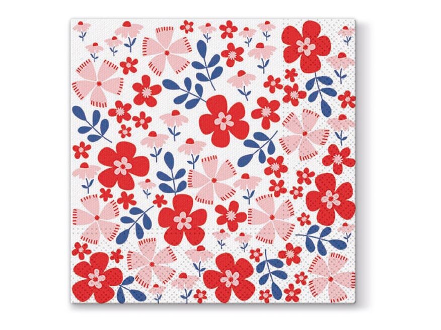 Třívrstvý papírový ubrousek. Krásné kvalitní ubrousky s motivem různobarevných květin dodají prostřenému stolu nádech a vykouzlí příjemnou atmosféru. Ideální na zahradní stolování, oslavy nebo k ozdobení interiéru, zkrášlíte tak každé prostírání.