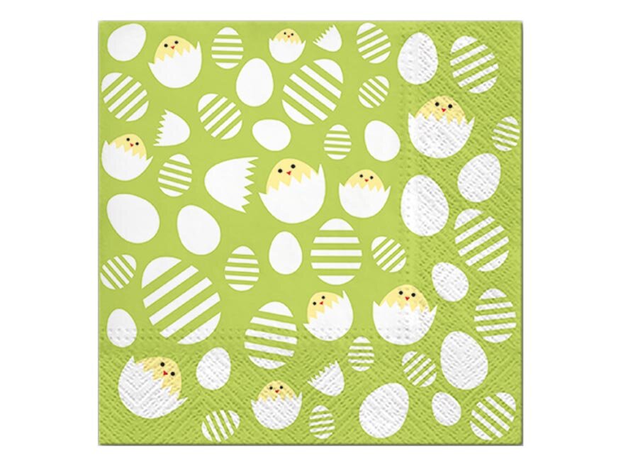 Papírový velikonoční ubrousek. Ubrousky s motivem vajíček jsou stylovým doplňkem Velikonoc na váš slavnostní stůl. Ubrousek je kvalitní z třívrstvého papíru. Vhodný i k ubrouskové technice.