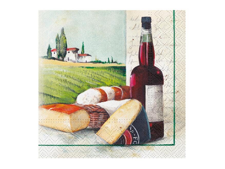 Celoroční ubrousek s motivem sýrů a vínaUbrousek, který vás přenese přímo do srdce Toskánska. Malebná krajina s cypřiši, láhev červeného vína, sýry a čerstvé pečivo vytváří atmosféru pohodových chvil strávených s přáteli u dobrého jídla. Skvěle se hodí nejen na letní posezení na terase, ale i na...