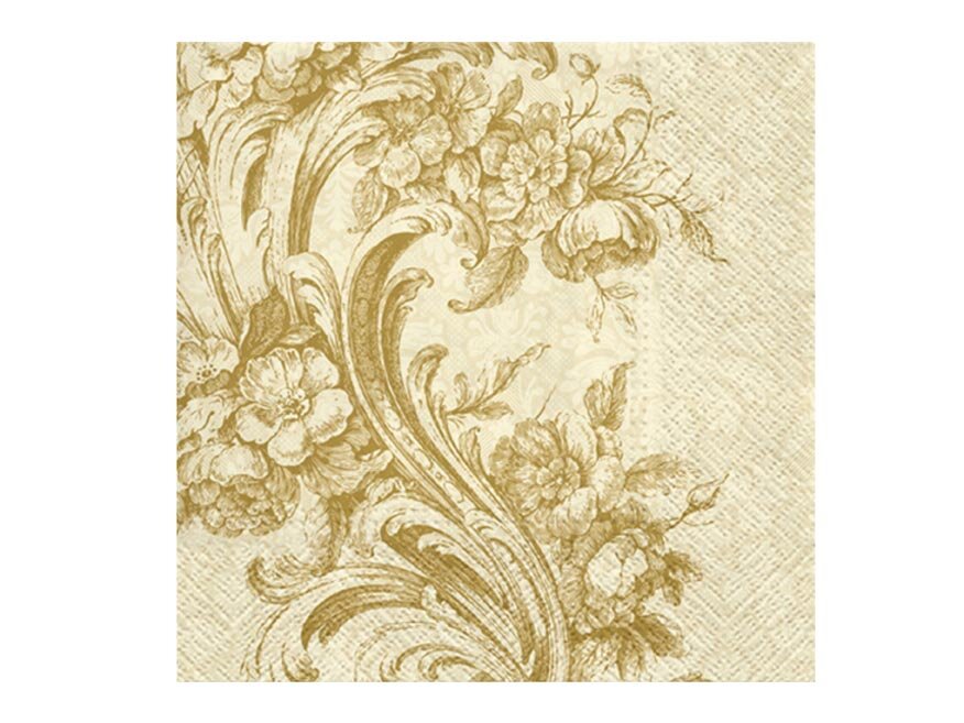 Celoroční ubrousek se zlatými ornamenty a květySpojení elegance a jemné romantiky, přesně takový je tento ubrousek. Bohatý ornamentální vzor v béžovo-zlatém tónu se prolíná s detailně zpracovanými květy, které celý motiv zjemňují. Výsledkem je design, který působí slavnostně a noblesně, ale...