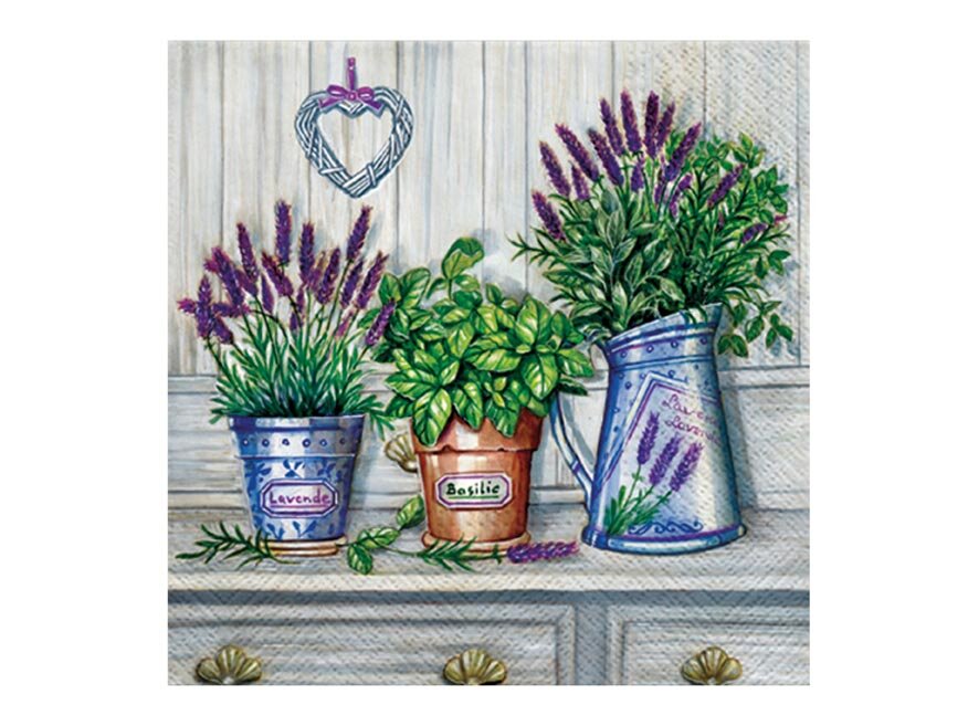 Celoroční ubrousek s levandulí a bazalkouProstírání s vůní venkova. Ubrousek s motivem levandule a bazalky v květináčích a džbánu přinese na váš stůl atmosféru provensálské kuchyně a letních dnů. Jemně laděné barvy a rustikální pozadí vytvářejí harmonii, která působí svěže a útulně.Vyrobený z...