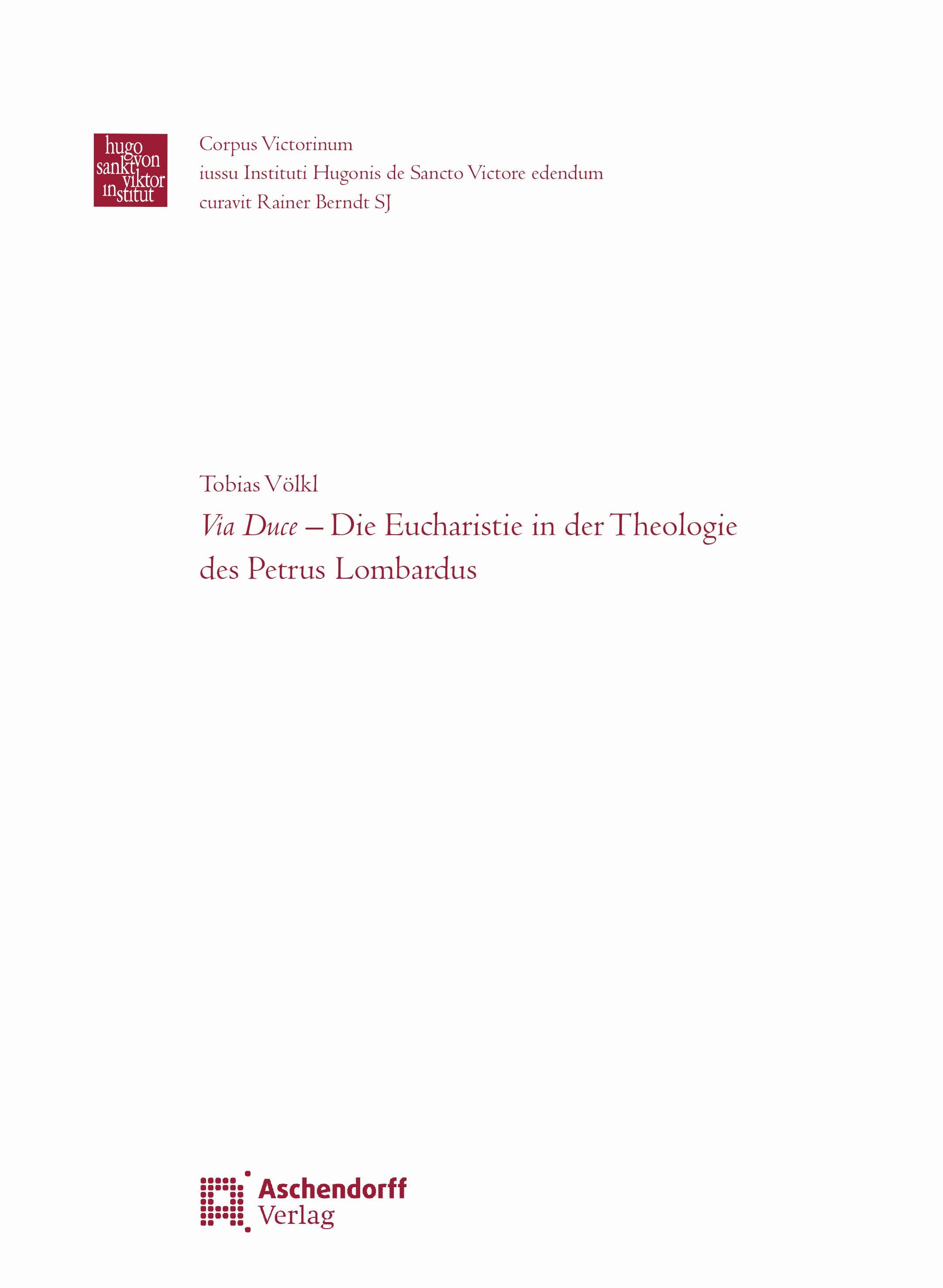 Via Duce - Die Eucharistie in der Theologie des Petrus Lombardus (německy)