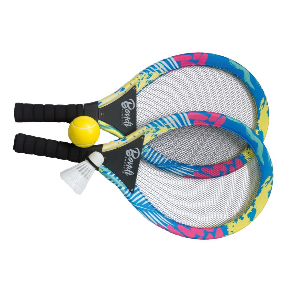 Barevný neoprenový hrací set pálek vhodný jak na pláž tak do vody. Set obsahuje měkký pěnový míček a badmintonový košíček. prečítať celé