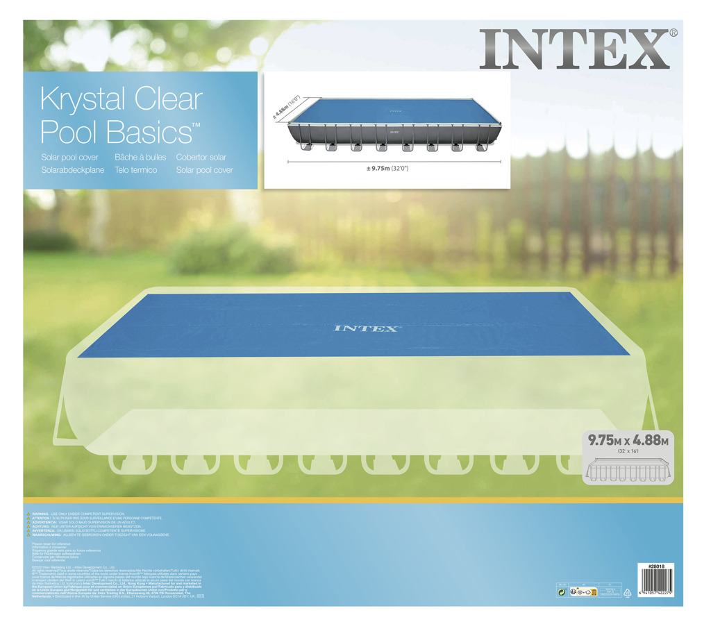 INTEX solární plachta pro bazény o velikosti 9,75 × 4,88m o průměru 960×466 cm. Pomáhá udržet vodu teplou a sníží odpařování vody o 95%. prečítať celé