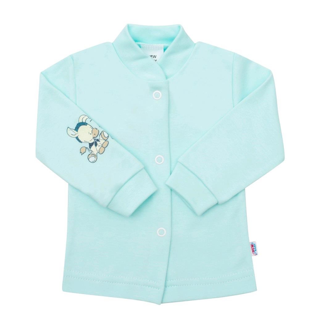 Kojenecký bavlněný kabátek New Baby Donkey s veselým obrázkem oslíka v příjemné pastelové barvě. Kabátek je vhodný pro miminka už od narození pro svou jemnost a měkkost. Je vyroben z kvalitní bavlny, která nedráždí pokožku dítěte. Kabátek má obrázek na rukávku a zapínání na cvočky po celé délce, což usnadňuje oblékání. Složení 100% bavlna.