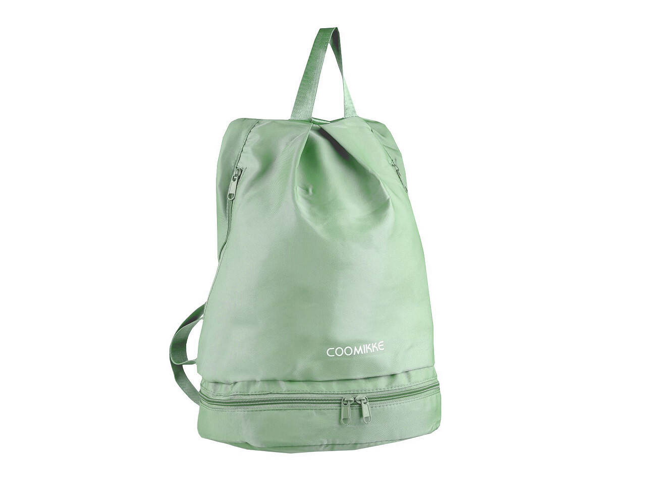 Má 4 oddělené kapsy na zip. V přední části má 2 velké boční kapsy na zip. Další je umístěná na zadní straně batohu. Poslední kapsa je dole, hodí se např. na přezůvky. Ucho je pevné, krátké do ruky či na pověšení. Popruhy jsou dostatečně dlouhé s možností regulace pro pohodlné užívání během celého dne.