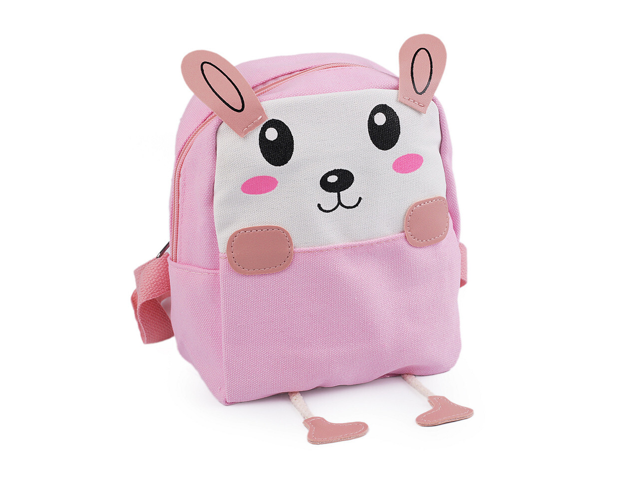 Malý textilní batůžek v podobě zvířátka si děti zamilují na první pohled. Je pevný, vyrobený z kvalitního bavlněného plátna. Přední stranu má ozdobenou potiskem a koženkovými detaily. Zvířátko určitě zaujme i svými nožkami, které se při každém pohybu houpou.