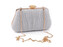 Malá společenská kabelka vyzařuje eleganci a luxus, díky lurexu se třpytí. Zdobí ji výrazné zapínání v podobě brože s kabošonem. Z obou stran je zřasená tkaninoa. Kabelka má po celém obvodu kovový rámeček. Je pevně vyztužená, její součástí je dlouhý odnímatelný řetízek na karabiny. Je ideální pro společenské události, večerní akce nebo formální setkání, kde chcete zazářit.