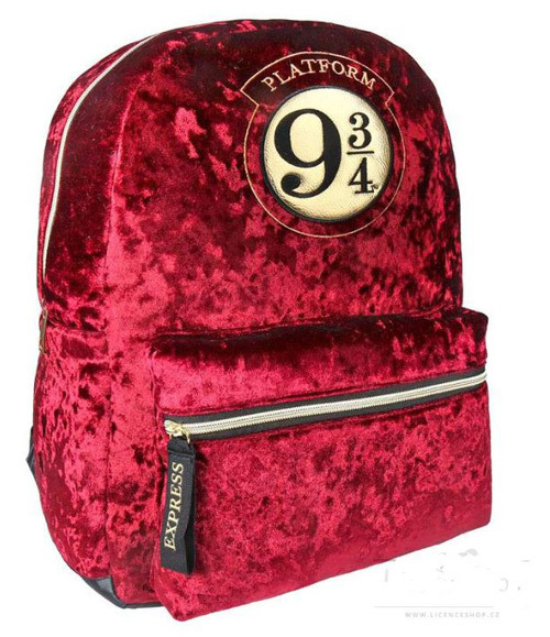 Vínový batoh s přední kapsou s grafikou nástupiště 9 3/4.