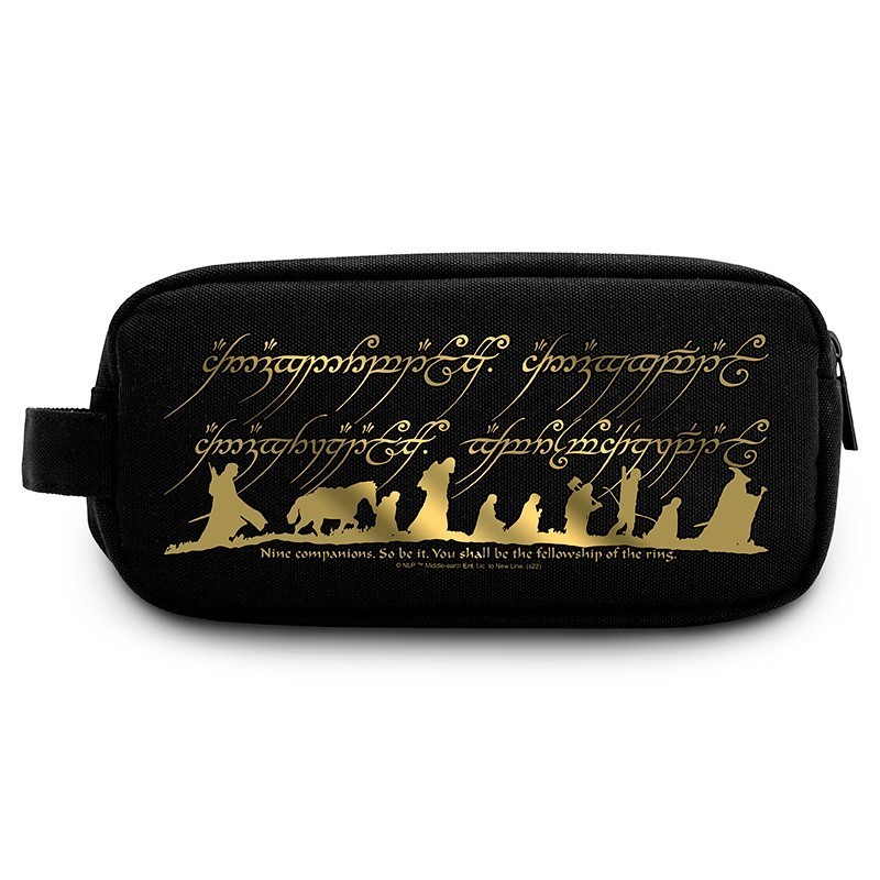 Užite si cestovanie s originálnou toaletnou taškou inšpirovanou legendárnou fantasy sériou Pán prsteňov. S motívom Spoločenstva Prsteňa, ktorý je vyvedený v zlatej farbe, budete mať nielen praktického pomocníka, ale aj štýlový doplnok, ktorý poteší všetkých fanúšikov tejto ságy.