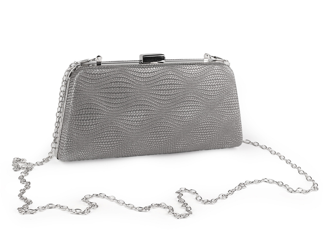Malá společenská kabelka vyzařuje eleganci a luxus, má zajímavou lesklou povrchovou strukturu, efektně se třpytí. Zdobí ji výrazné lesklé zapínání a rámeček po celém obvodu. Kabelka je pevně vyztužená, její součástí je dlouhý odnímatelný řetízek na karabiny. Můžete ji nosit v ruce nebo jako crossbody přes rameno či do kříže.