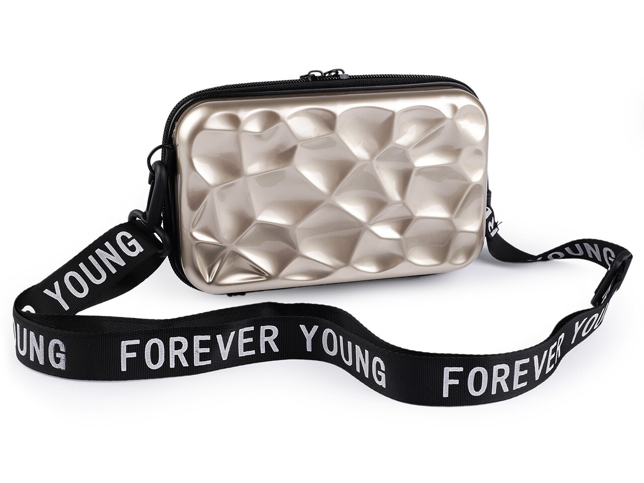 Dámská skořepinová kabelka / pouzdro crossbody s popruhem 18x11 cm - 1 ks - 1 stříbrnobéžová metalic