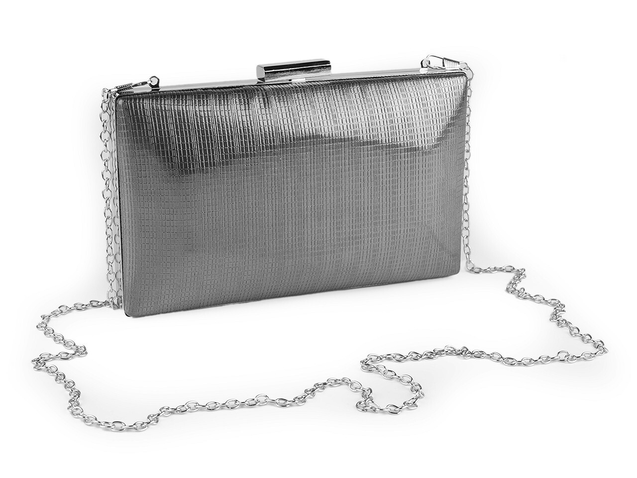 Malá společenská kabelka vyzařuje eleganci a luxus, má jemný perleťový lesk. Zdobí ji výrazné lesklé zapínání a rámeček po celém obvodu. Kabelka je pevně vyztužená, její součástí je dlouhý odnímatelný řetízek na karabiny. Můžete ji nosit v ruce nebo jako crossbody přes rameno či do kříže.