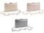 Malá společenská kabelka vyzařuje eleganci a luxus, má metalický lesk. Povrch má zajímavou kostičkovou strukturu. Zdobí ji výrazné lesklé zapínání a rámeček po celém obvodu. Kabelka je pevně vyztužená, její součástí je dlouhý odnímatelný řetízek na karabiny. Můžete ji nosit v ruce nebo jako crossbody přes rameno či do kříže.