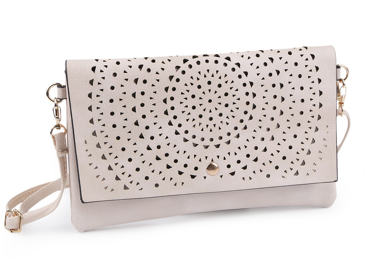 Malou kabelku z eko kůže si na první pohled zamilujete. Přední klopu zdobí vysekávaný vzor s mandalou. Součástí kabelky je nastavitelný popruh na karabiny, umožňující pohodlné nošení kabelky na rameni.