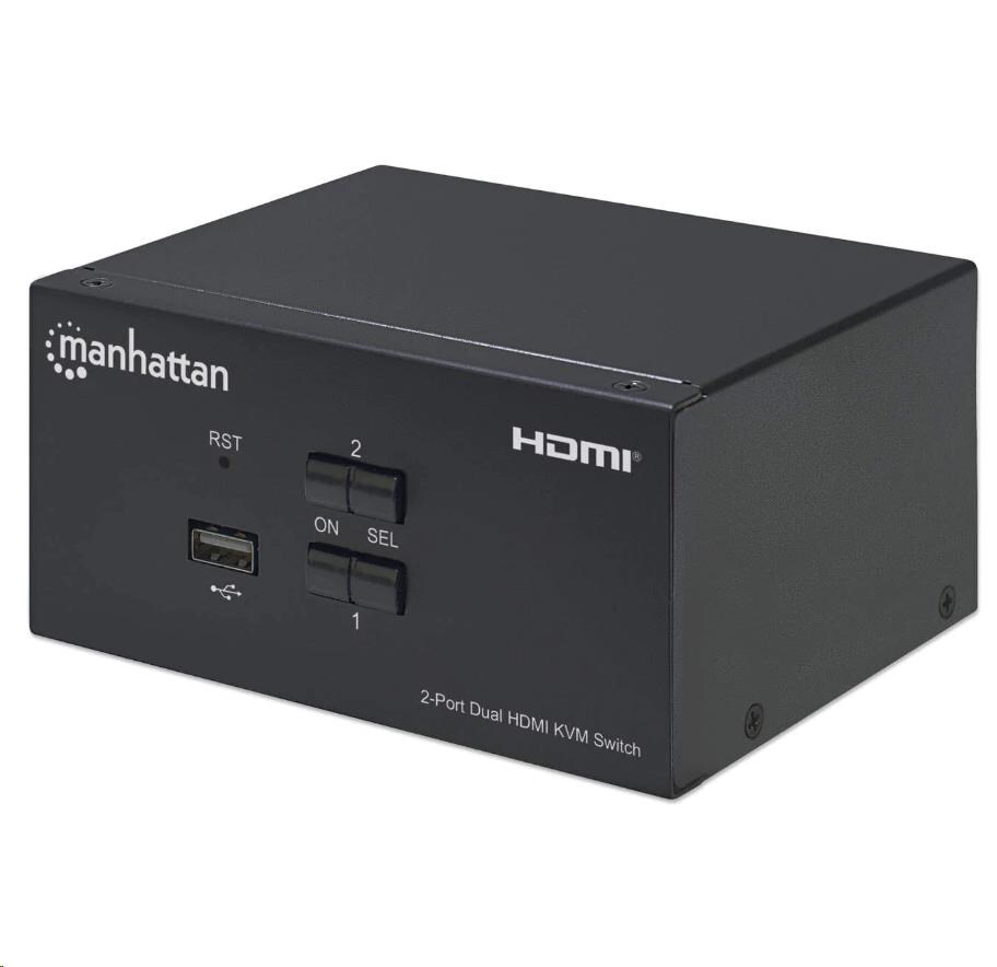 2-Port Dual-Monitor HDMI KVM SwitchThe Manhattan 2-Port Dual-Monitor HDMI KVM Switch is a compact solution for providing access and control over two HDMI/USB-equipped computers from a single keyboard and mouse and up to two monitors. It helps save you time on installation with its included combo...