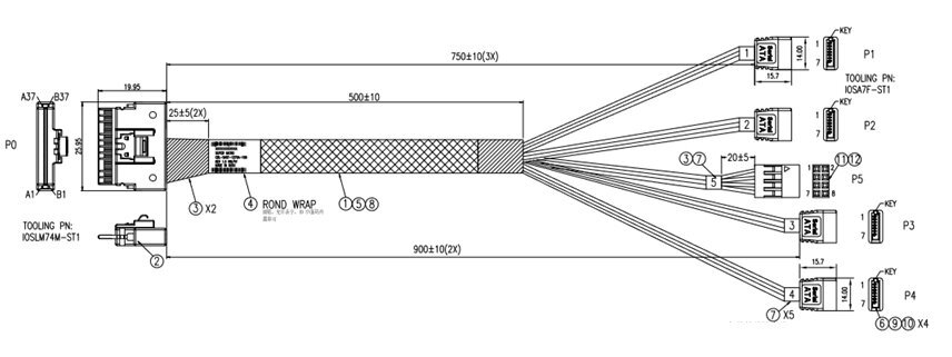 SFF-8654-8i (SlimSAS ×8) rovný -> 4×SATA - 75/75/90/90cm kabel + SGPIO (X13/H12/H13+SC815TQ/LA15/SC825)