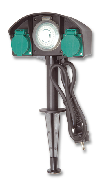Zahradní sloupek 2x zásuvka s krytem, časovač, IP44