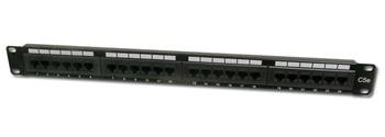 Patch panel,CAT5E,19",24xUTP RJ45,černáCat5e,EN-50173, ISO/IEC 11801 kryt a přední panel kovové provedeníčerná barva24x UTP RJ45, 8P8C nestíněné provedenípřipravené pro instalaci do 19" racku1U výškainstalace kabelů pomocí LSA nástrojebarevně rozlišené dle normy EIA/TIA 568 A & B