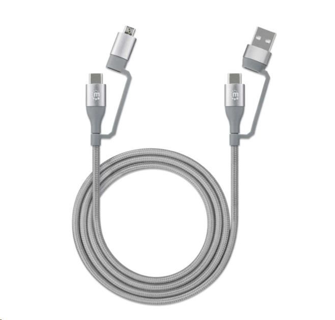 MANHATTAN Kabel 4-in-1, nabíjení a sync USB kabel, 480 Mbps, 3A/60W, 1m, pletený design, šedá