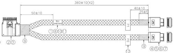 SFF-8654-8i (SlimSAS ×8) zalomený -> 2× OcuLink, 36cm kabel