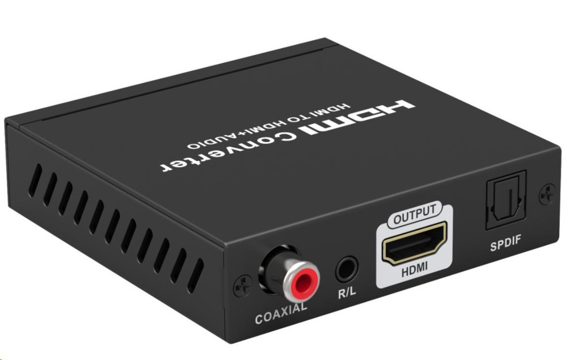 HDMI2.0 Repeater/Extender 4Kx2K@60Hz s oddělením audia, stereo jack, Toslink, RCAUmožní oddělit audio z HDMI2.0 vstupu na analogové / digitální audio, které je vyvedeno zvlášť na konektory: stereo jack, Digitální audio RCA CINCH nebo digitální optické TOSLINK (SPDIF)- Zesílí HDMI vstupní signál a...