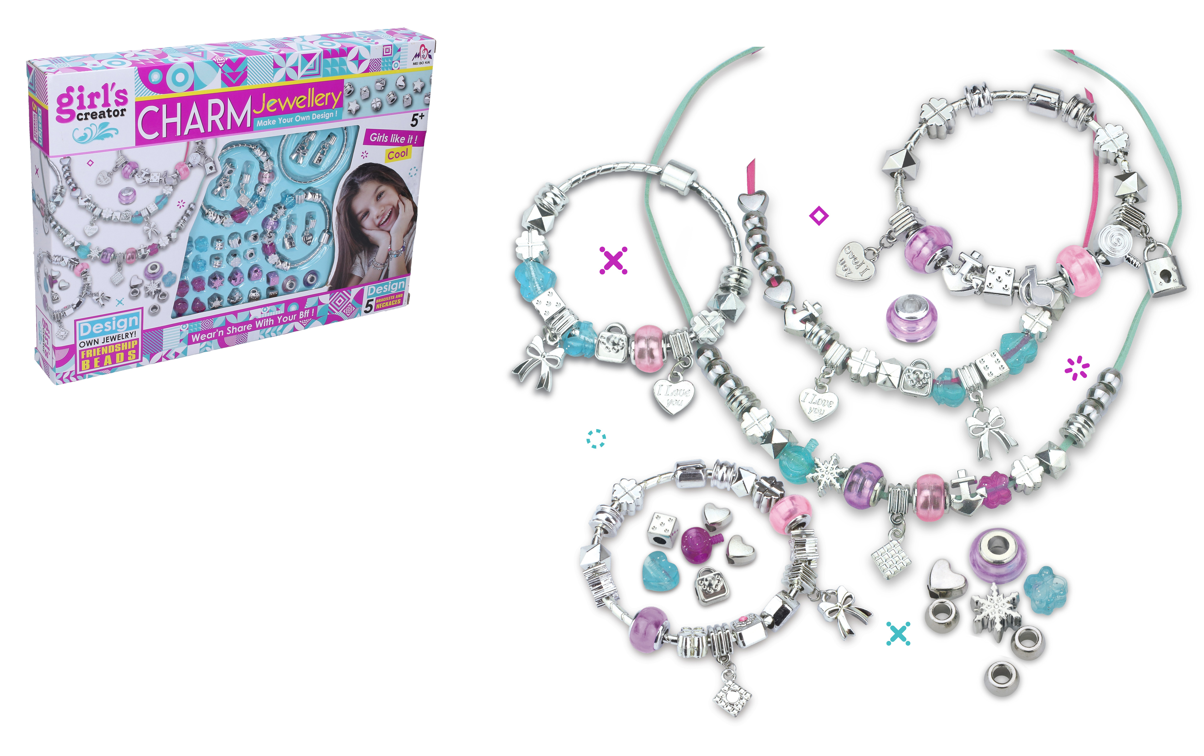 Sada obsahuje všetko, čo potrebuješ: rôznofarebné korálky, náramky, prívesky a šnúrky. Vďaka nim si môžeš vytvoriť nespočetné množstvo kombinácií a nechať vyniknúť svoju fantáziu. Náramky sú vhodné aj pre deti od 5 rokov, takže je to zábava pre celú rodinu alebo skvelý darček pre kamarátov.