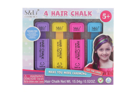 Křídy na vlasy. Balení obsahuje 4 barvy. Baleno v krabičce. Rozměry balení cca 18x15,5x2,5 cm. Věk 5+ prečítať celé