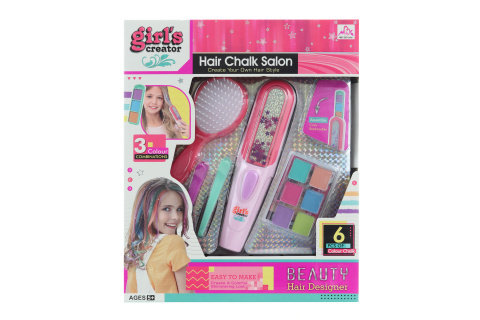 Sada pro malé kadeřnice. Balení obsahuje křídy na vlasy, aplikátor, kartáč na vlasy a dvě spony. Baleno v krabici. Rozměry balení cca 26x31x6 cm. Věk 5+ prečítať celé