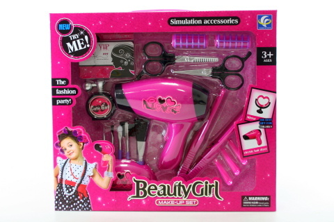 - Obsahuje: fén, nožnice, žehličku na vlasy, natáčky, štetčeky a ďalšie doplnky