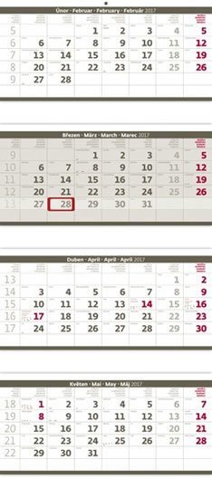 Kalendář nástěnný 2017 - 4měsíční/šedý skládaný s jmenným kalendáriem (česky)