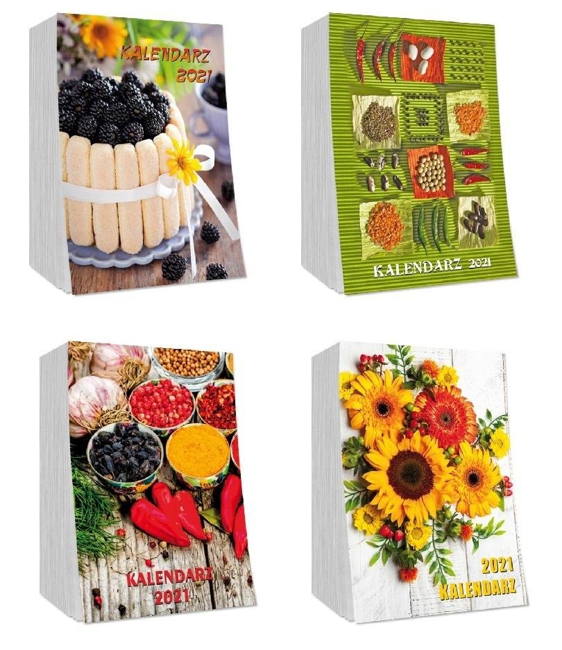 Mix wzorów. Towar wysyłany losowo.Układ: 1 dzień na stronieKalendarium: w języku polskim, podwójne imieniny, wschody, zachody Słońca i Księżyca, fazy Księżyca, znaki zodiaku, numeracja dni, przysłowiaOprawa: klejona, okładka w 4 wzorachCzęść informacyjna: na rewersie: tajemnice domowe, smaczny...
