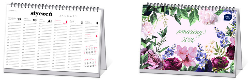 Kalendarz na biurko tygodniowy Kwiaty, 2026, Interdruk