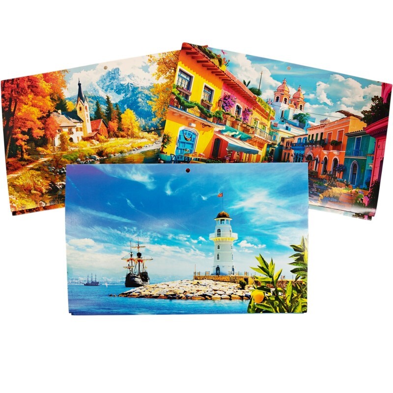 Kalendarz trójdzielny główka bez wypukłości.Plecy - karton 300 g białe lub kolorowe, bigowane.Kalendarium - 135x 295, trzy oddzielne kalendaria, kartki klejone, pod spodem dla usztywnienia karton 220g, druk dwukolorowy, papier 70g 3-języczne kalendarium,Główka zdjęcia - 210x320 - druk 4 kolory na...