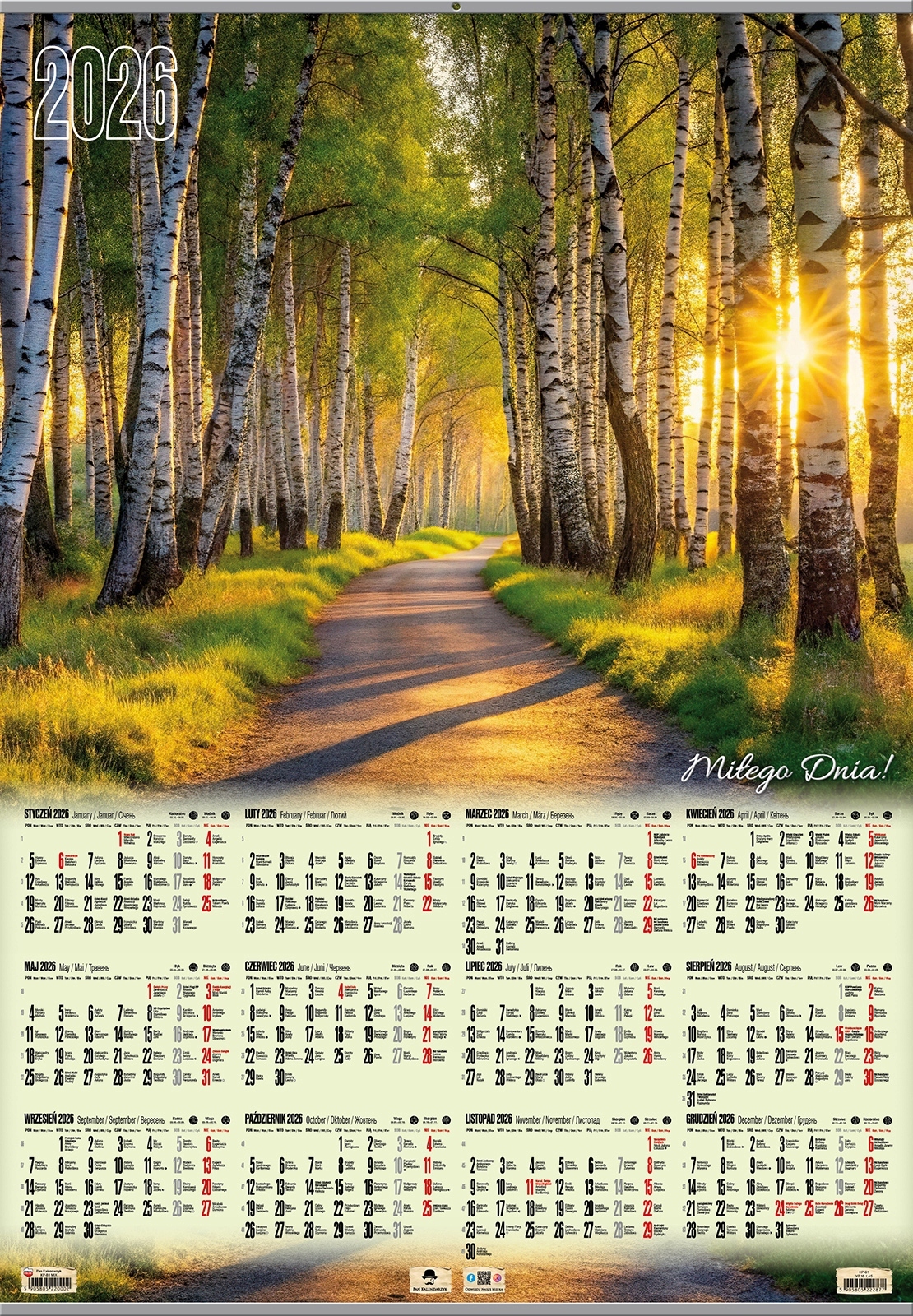Kalendarz 2026 plakatowy B1 z listwą Las KP-B1 V.12