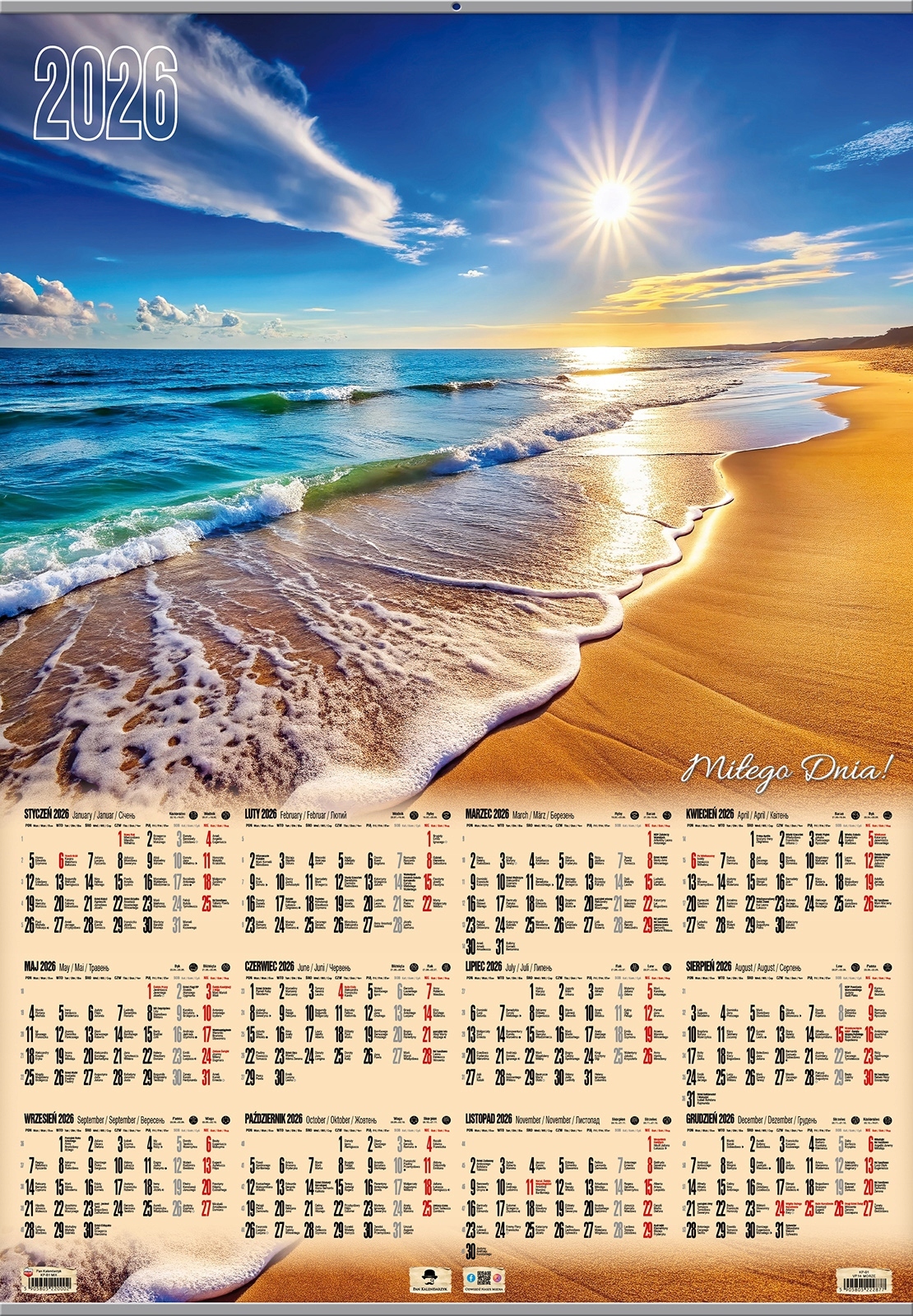 Kalendarz 2026 plakatowy B1 z listwą Morze KP-B1 VP.2 (polsky)