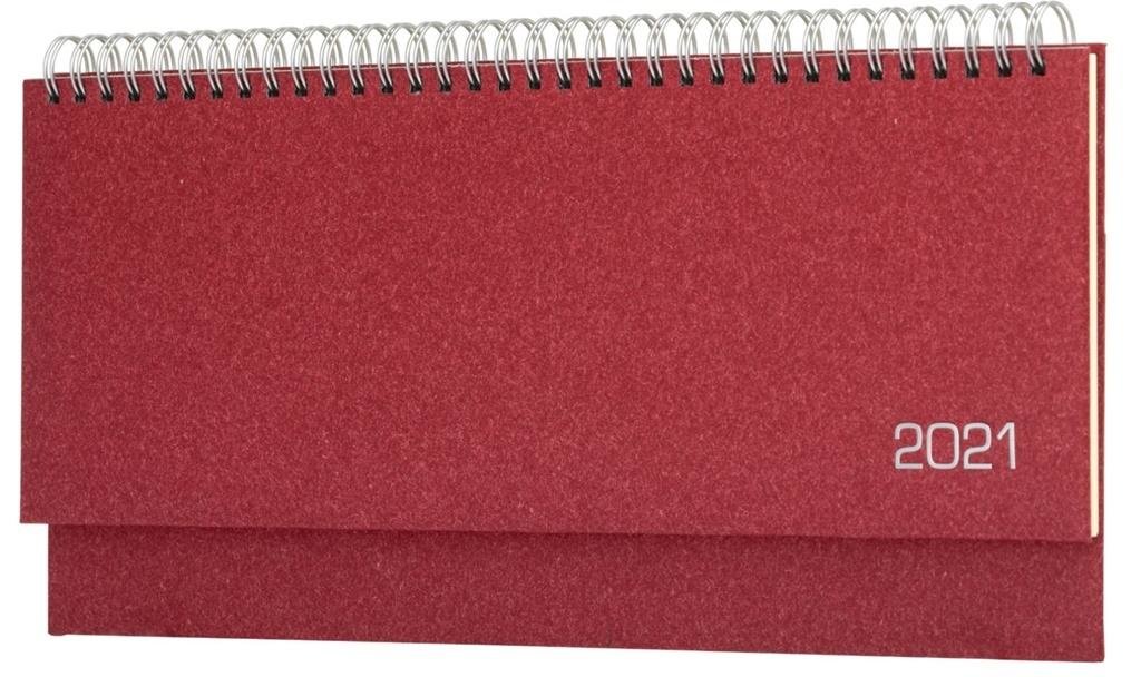 Terminarz leżący na biurko z kalendarium w układzie tygodniowym poziomym. Zaprojektowany specjalnie do biura. Na okładce istnieje możliwość tłoczenia termicznego. Zawiera przejrzyste kalendarium w układzie tygodniowym poziomym oraz część informacyjną. Grzbiet spiralowany.