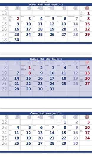 Kalendář nástěnný 2018 - 3měsíční/modrý skládaný s jmenným kalendáriem (česky)