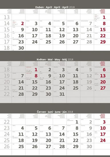 Kalendář nástěnný 2018 - 3měsíční/šedý s jmenným kalendáriem (česky)