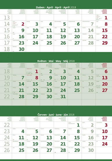 Kalendář nástěnný 2018 - 3měsíční/zelený s jmenným kalendáriem (česky)