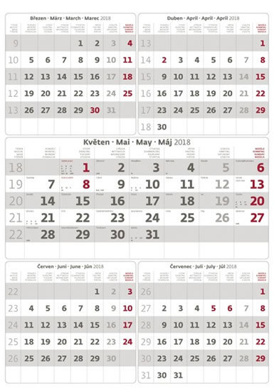 Kalendář nástěnný 2018 - 5měsíční/šedý s jmenným kalendáriem (česky)