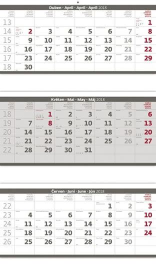 Kalendář nástěnný 2018 - 3měsíční/šedý skládaný s jmenným kalendáriem (česky)