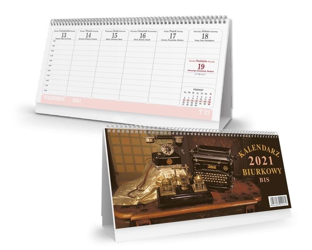 Układ:- 1 tydzień na stronie z miejscem na notatkiDruk, papier:- 2 kolory, papier 70 g/m2 w kolorze białymKalendarium:- w języku polskim, angielskim, niemieckim, potrójne imieniny, wschody i zachody Słońca, numeracja tygodni, skrócone kalendarium roku 2021, 2022Oprawa:- grzbiet zaciskany spiralą...