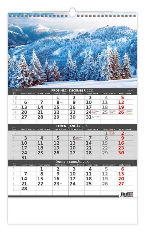 Kalendář nástěnný 2022 - Hory - 3měsíční/Hory - 3mesačné (česky)