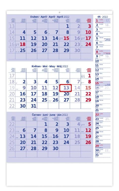 Kalendář nástěnný 2022 - Tříměsíční modrý s poznámkami (česky)
